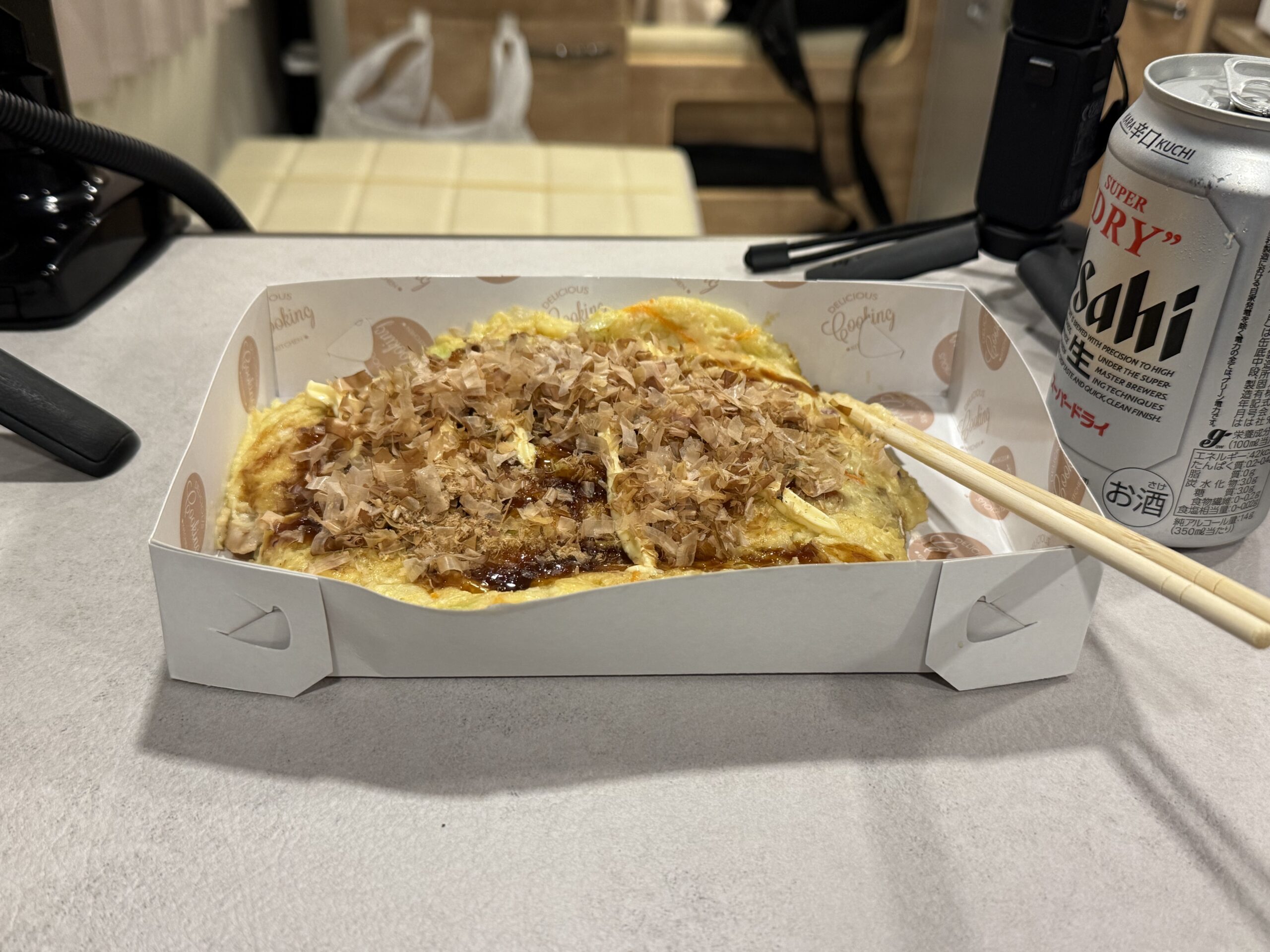 父母ヶ浜には美味しそうなハンバーガー屋さんがあるのだけど、こんな写真撮ってたら閉店してて食べ損ね、仕方ないので車内にあった材料でお好み焼きみたいなのをでっち上げて食べた。ソースがあれば何でもウマイ。