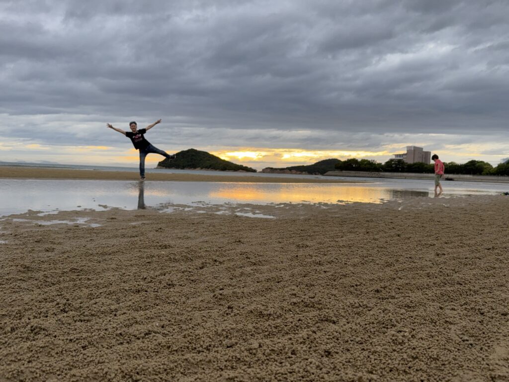 父母ヶ浜はコンディションが良いとウユニ塩湖みたいな写真が撮れると評判の映えサイトです。でも、めっちゃムズイの。潮が満ちていくタイミングが良いタイミングなのだけど、カメラを地面に置いて潮に呑まれゆくカメラに怯えながらザブザブ海の中を歩いて被写体ポイントに行く的な。一人だとムズイ。こんどリベンジしたい。