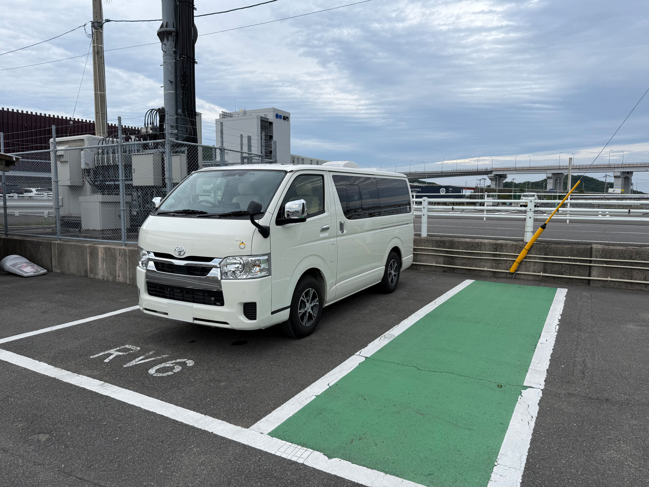 1月に納車されたソラン号、ベースがハイエースという商用車なので便利系装備がめちゃんこ貧弱で、この旅の期間に自動車用品店に預けていろいろ付けてもらっていました。クルコンとか、ドアロックした時にサイドミラー畳むやつとか、まともなスピーカーとか。