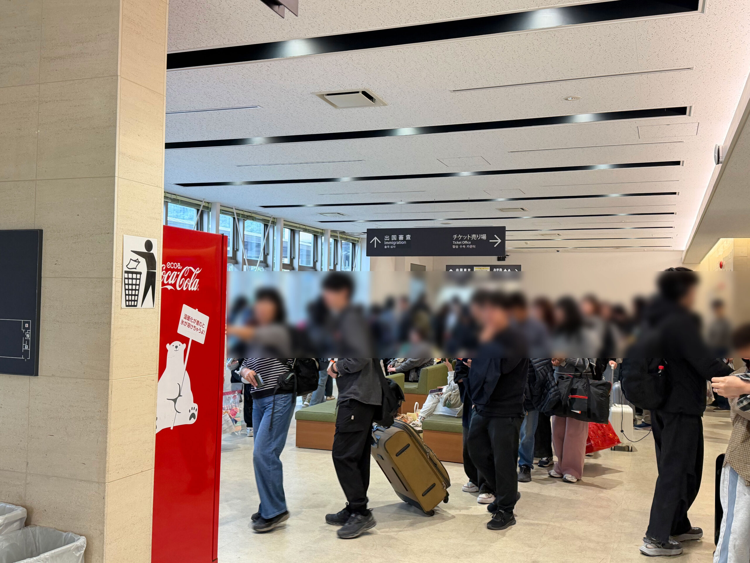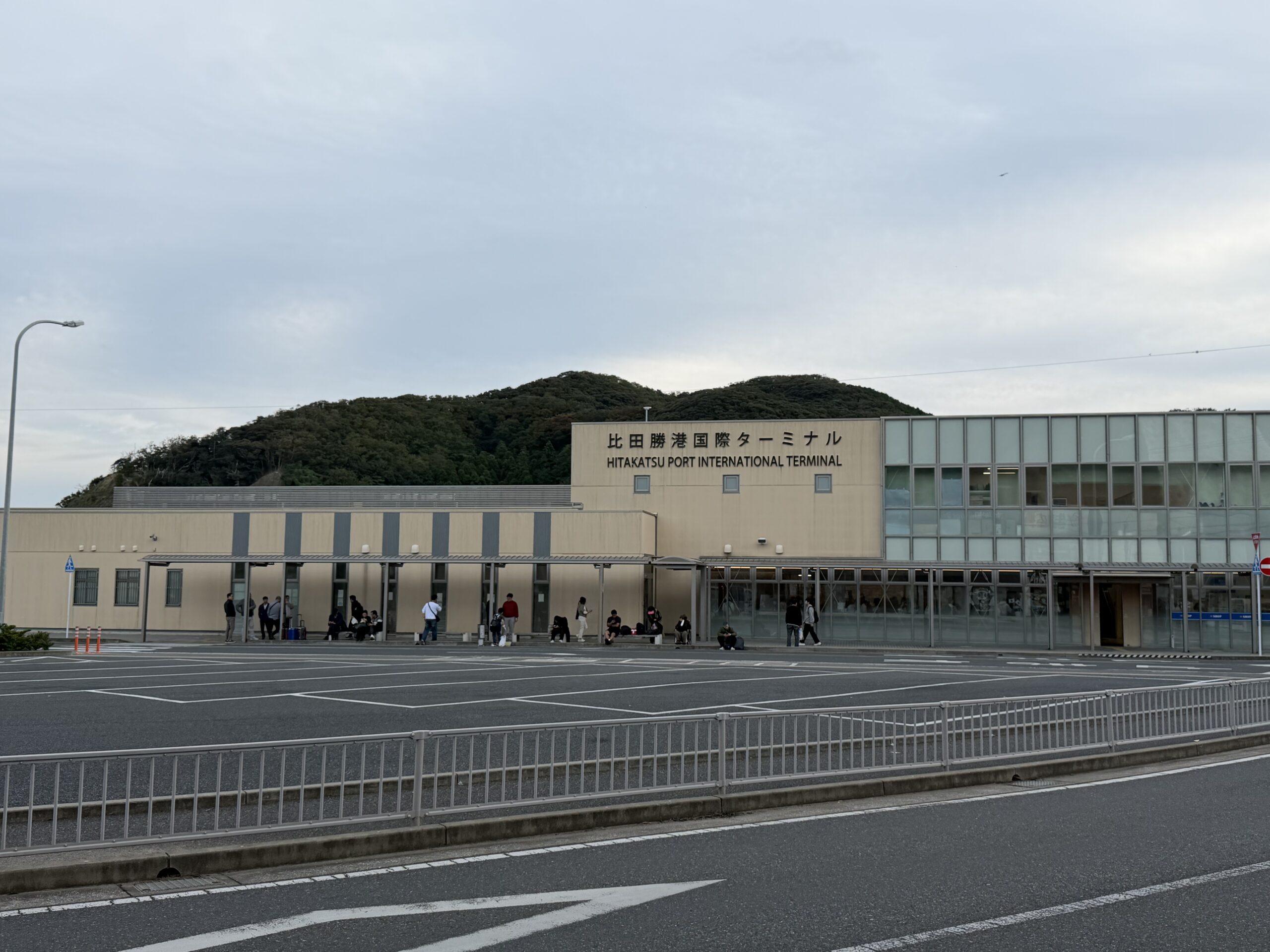比田勝から韓国釜山まで90分とかで、みなさんすごい軽装でフェリーに乗っていっていました。